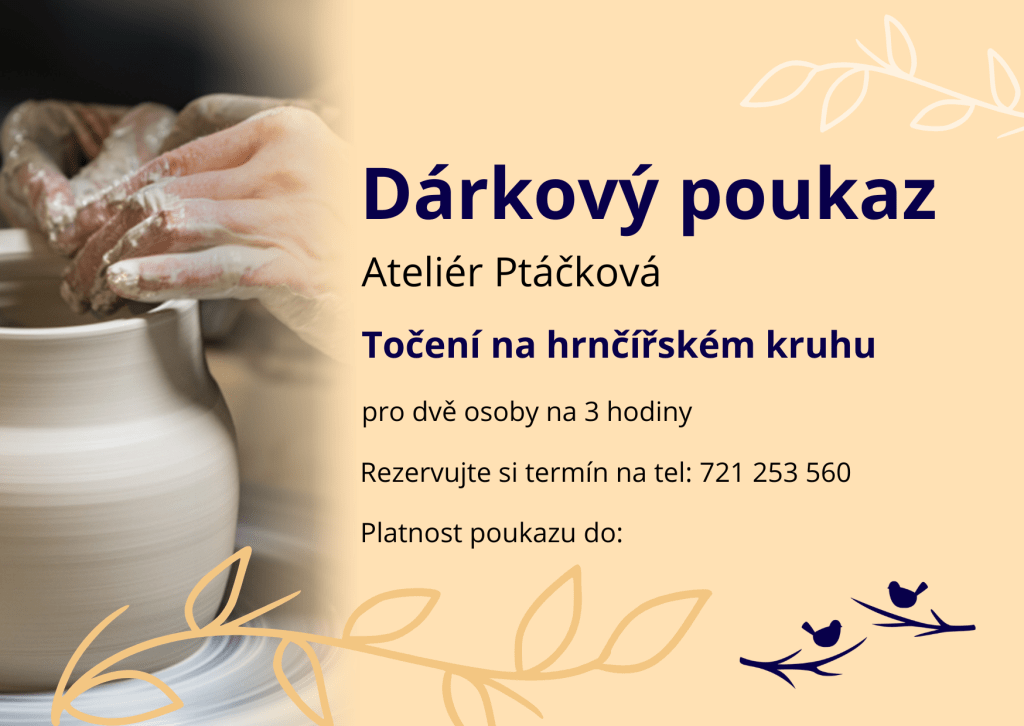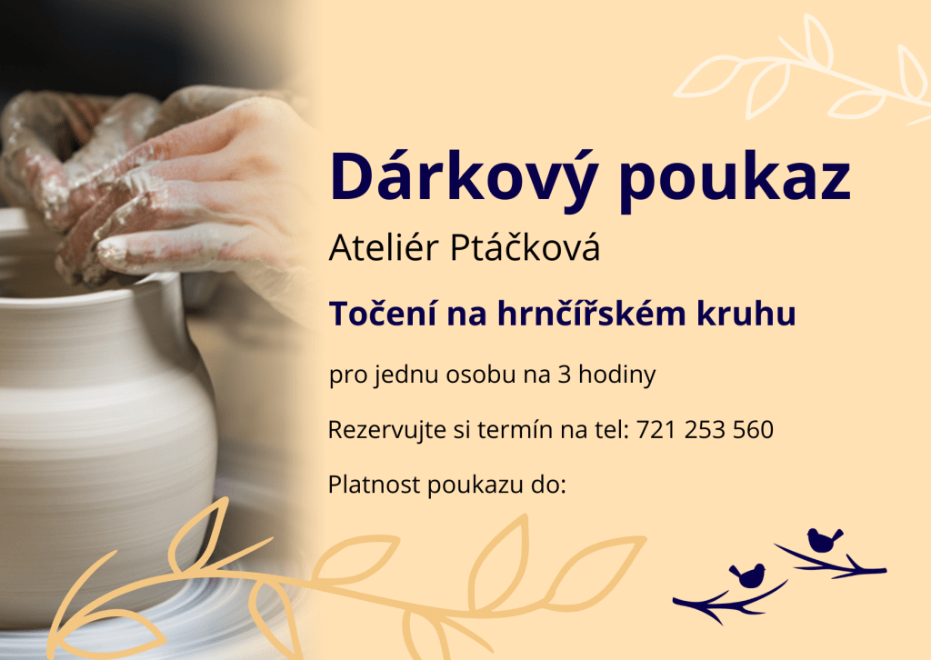 Darujte zážitek s vůní hlíny a kreativity. Dárkový poukaz je na jednu tříhodinovou individuální lekci točení na kruhu.