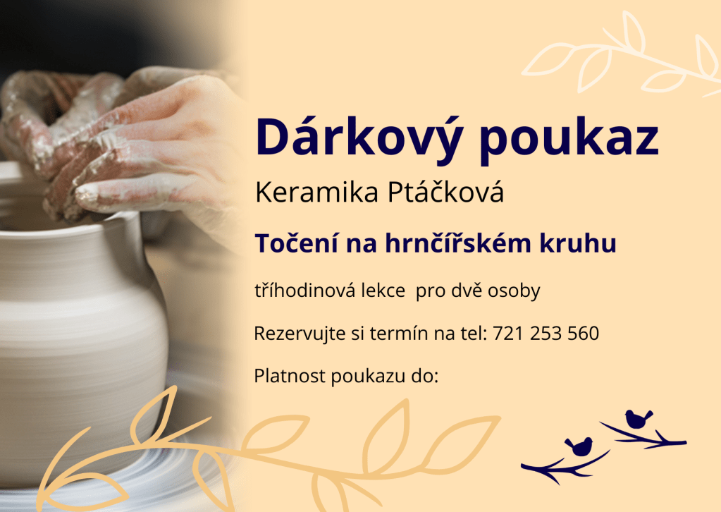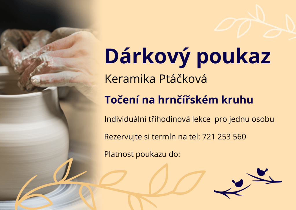 Darujte zážitek s vůní hlíny a kreativity. Dárkový poukaz je na jednu tříhodinovou individuální lekci točení na kruhu.