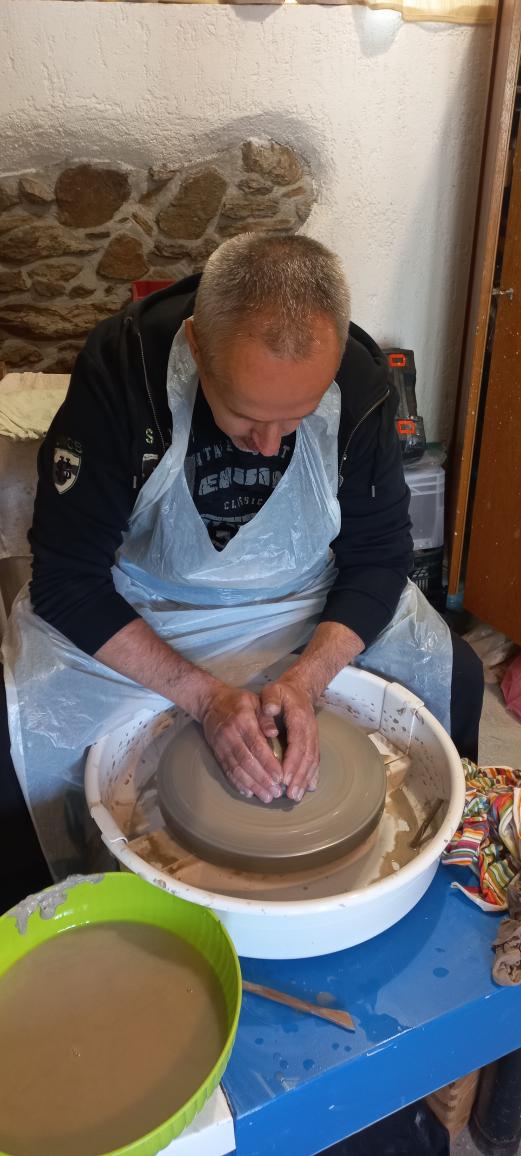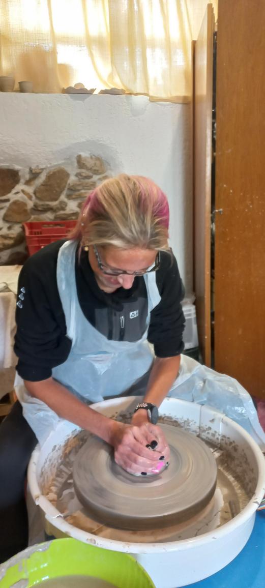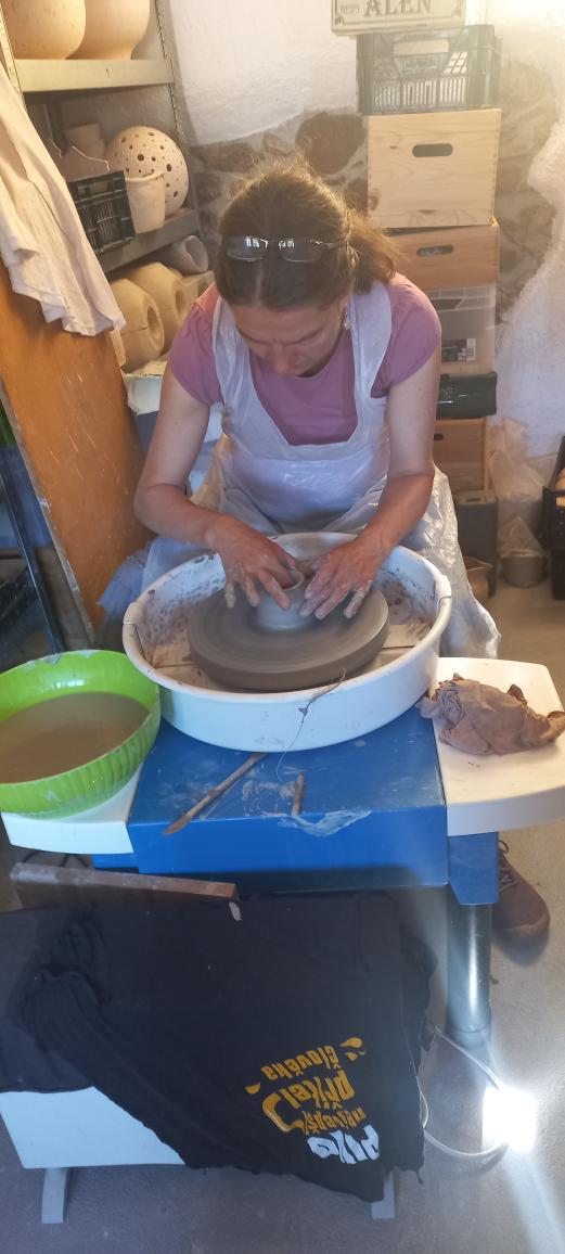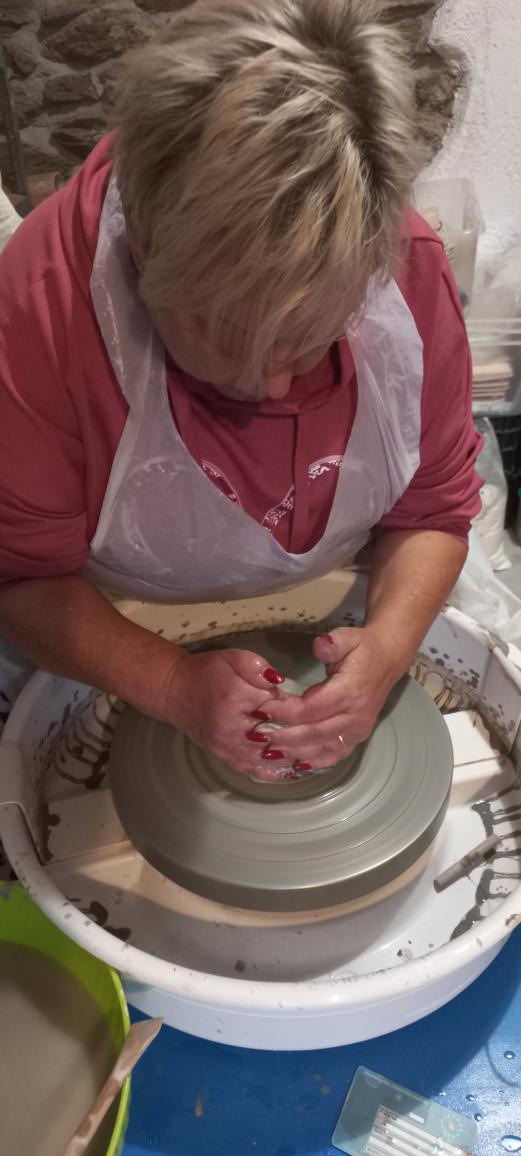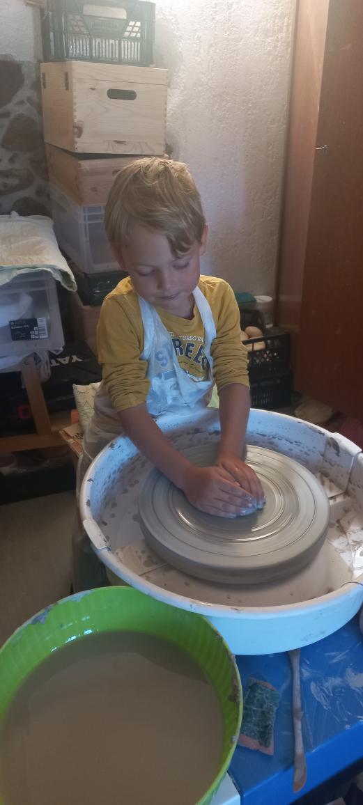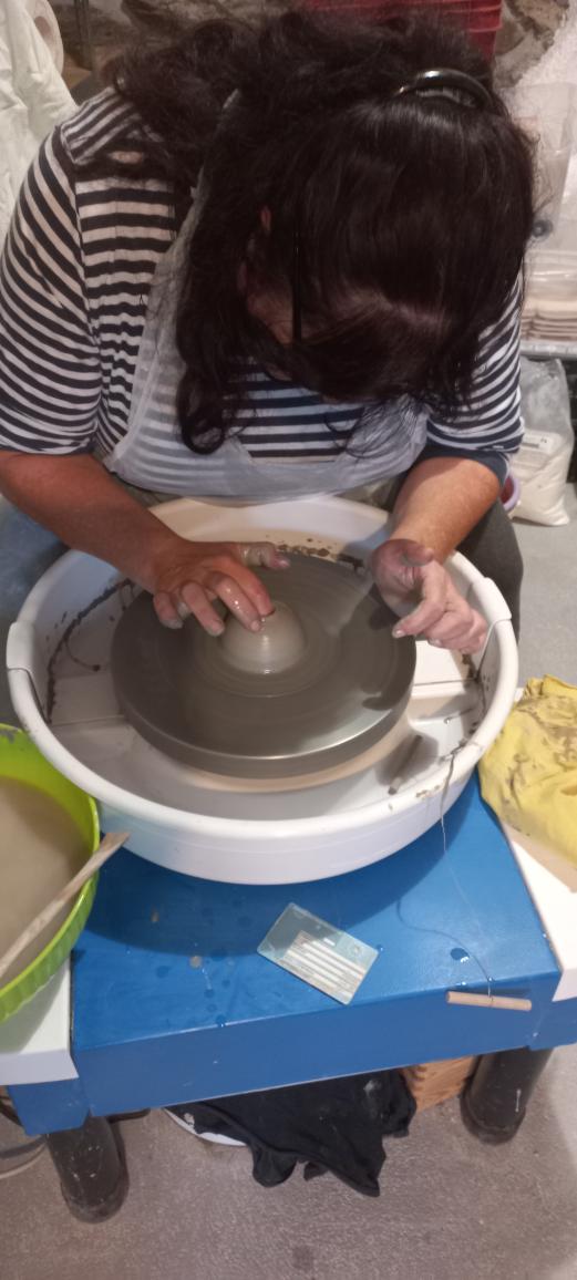 Úplné začátečnické pokusy točení na hrnčířském kruhu v naší dílně.